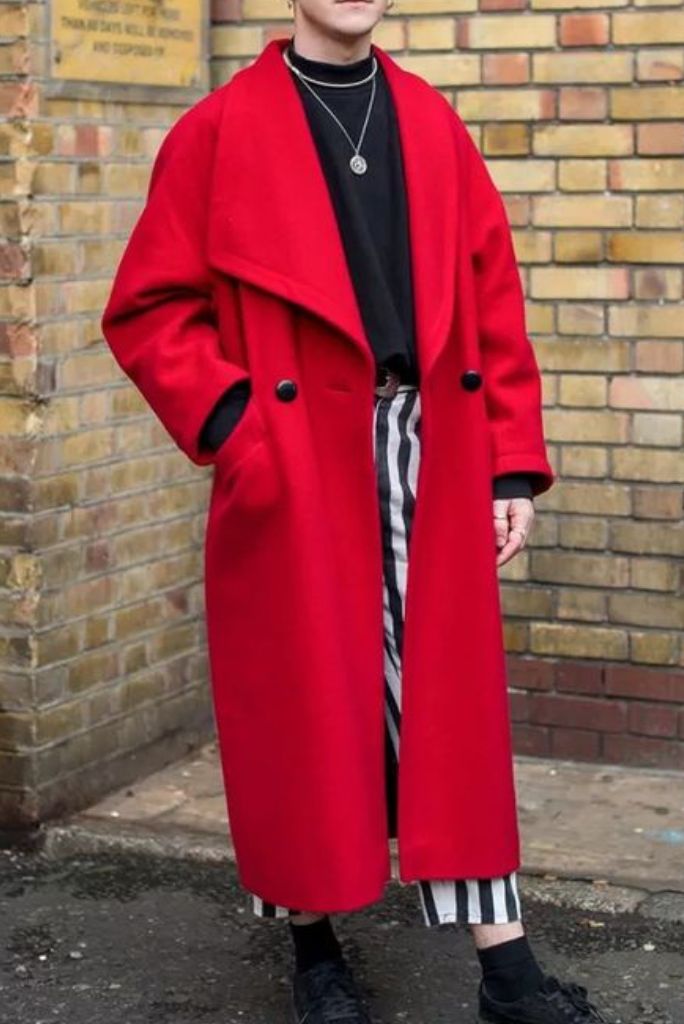 Red Double Breasted long Coat Men Tweed Coat Vintage Customize Jacket Winter Wear Coat Him