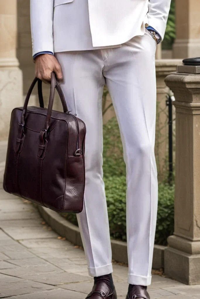 Men White Double Breasted Two Piece Suits Formal Wedding Business Dinner Party Wear Suits Special Gift For Him