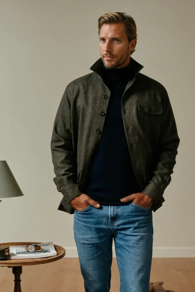 The men's vintage olive green herringbone winter woolen shacket is a comfortable and stylish choice. crafted from imported premium wool the shacket provides warmth without compromising on comfort. The woolen jacket features designer inverted pleat pockets. The design of these pockets provides you both protection and convenience. The shacket has polyester buttons that give it an elegant look. You can also wear it on casual outings or dinner dates where you look unique. It is also perfect for formal events like meetings, interviews and parties.