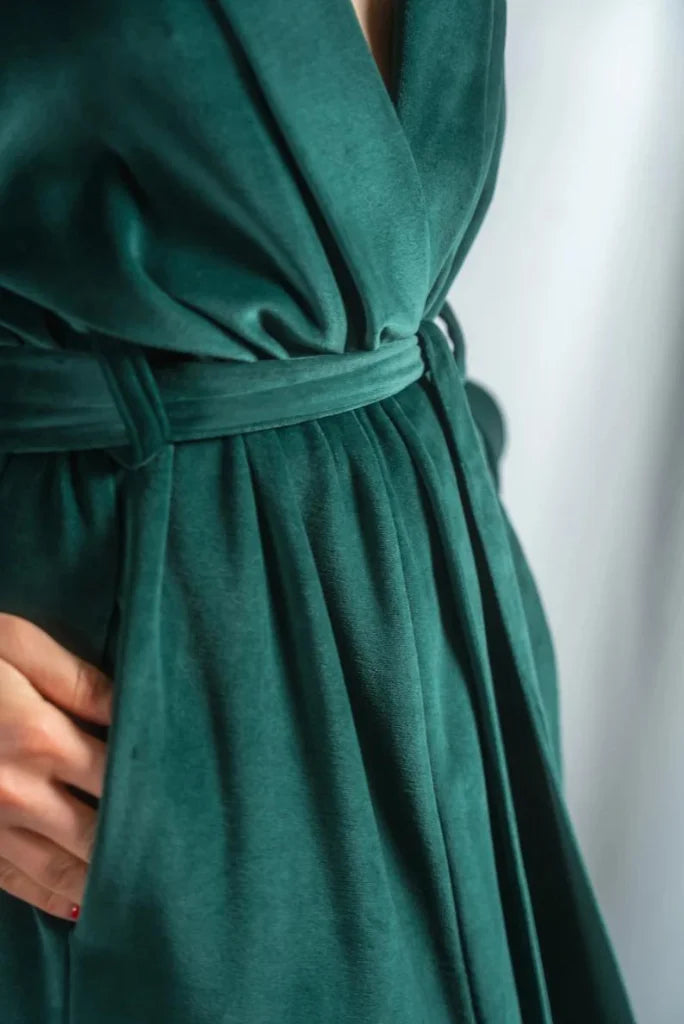 Women Green Velvet Robe for Bath and Party, Velvet Kimono Robe for Her