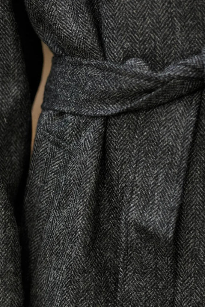 Overcoat - Long Tweed coat, Belted Coat, Double Breasted, Classic Raglan sleeves and Two Outer Pockets