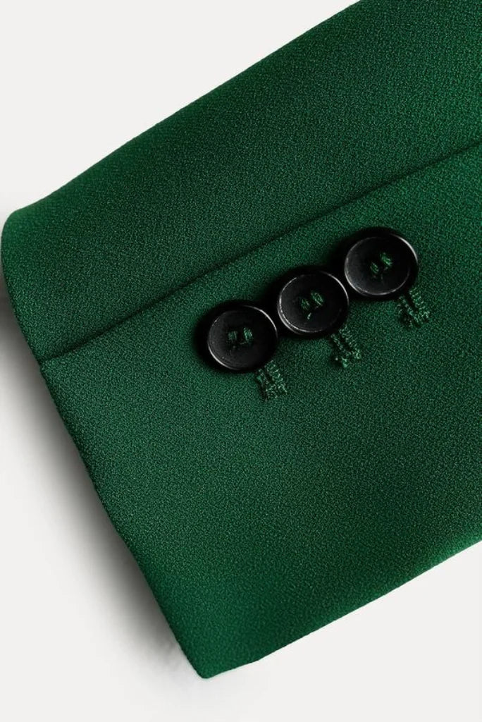 Jade Green Straight Fit Blazer, Long Sleeves with Shoulders Pads and a Button opening,