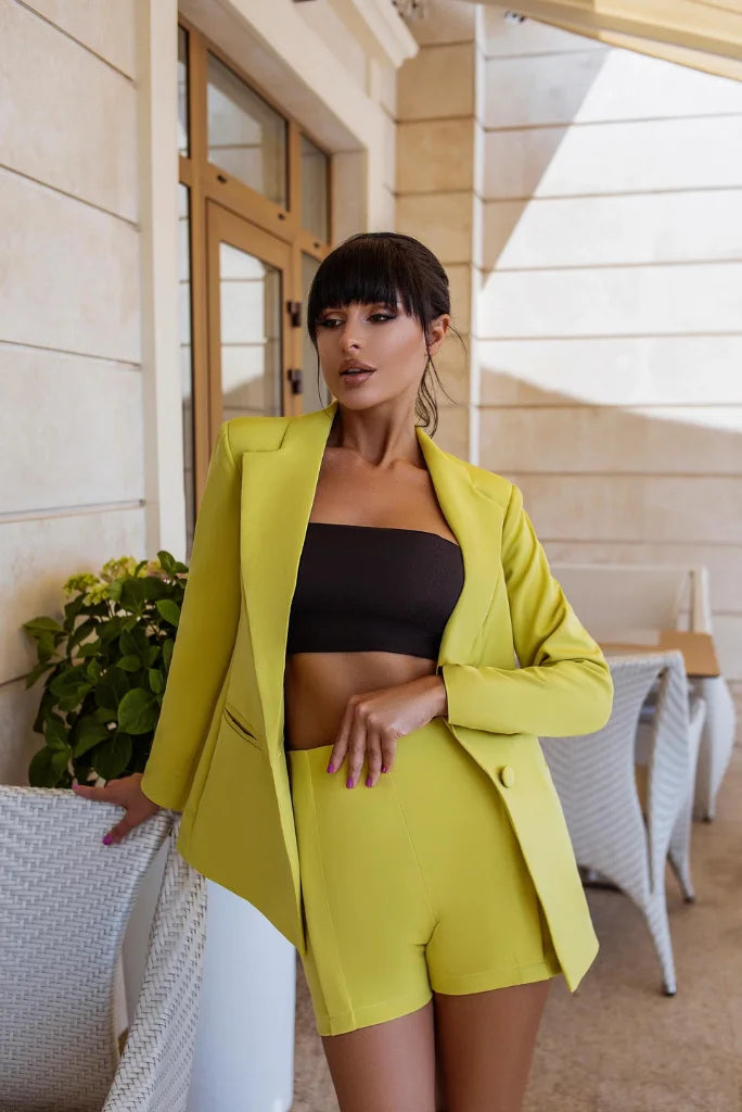 Women's Parrot Green 2 Piece Dress, Blazer and Shorts Dress Set for Her